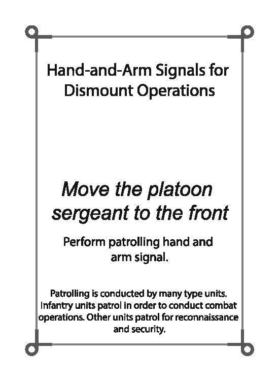 - Hand & arm signals from the March 2017 Training Circular 3-21.30: Visual Signals.